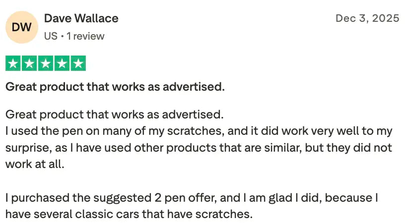 The All Cars Pen fixes it permanently in 60 seconds using polymer liquid that fuses with your paint, not wax that washes off.