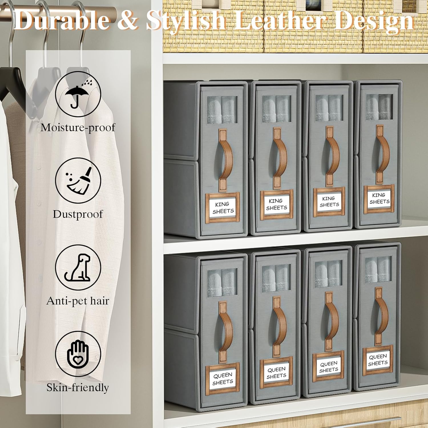 I love these! I can store all my sheets without them getting wrinkled. The boxes are sturdy. and the labels help me stay organized. Definitely made my linen closet look so much better!